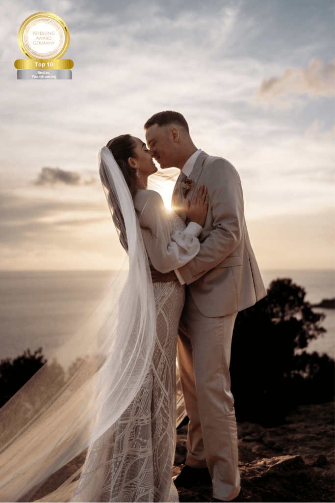 Das Zertifikat vom Wedding Award Germany steht für Paarbilder, die nicht gestellt wirken, sondern echt sind. Eine Jury hat dieses Shooting mit einer Top-10-Platzierung ausgezeichnet. Wenn zwei Menschen sich so verlieren wie hier – ruhig, vertraut, voller Gefühl – entstehen Bilder, die bleiben.
